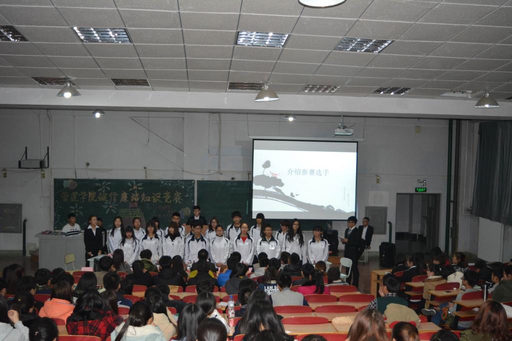 11月5日,管理学院在第六教学楼大阶梯五举办了廉洁诚信知识竞赛,学院党委副书记王建光、学办张宝国及芦廷峰老师出席了此次活动。